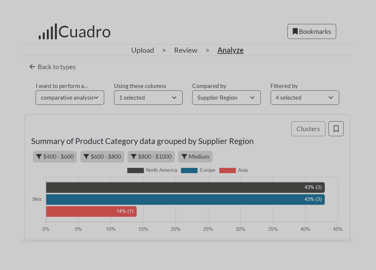Cuadro analyzes, compares, filters, and exports your charts for you, allowing you to focus your time on drawing insights and making decisions.